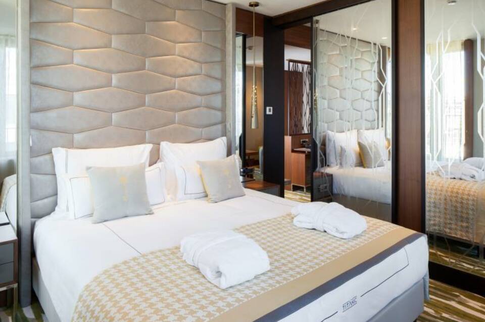 Das Hotel liegt im Osten von Berlin, nur wenige Minuten vom Museum für moderne Kunst entfernt, mit einfachem Zugang zum Hauptbahnhof, den Autobahnen und allen internationalen Flughäfen. Das Titanic Chaussee Berlin bietet 389 Zimmer und ruhige, helle Suiten, ein mediterranes Restaurant, eine geräumige Bar, ein multifunktionales Kongresszentrum und ein 300 Quadratmeter grossen Sports Club & Spa, mit einem original orientalischen Hamam, Dampfbäder, Sauna, Behandlungs- und Massageräume und ein Pool mit natürlichem Licht. 376 Zimmer und 13 Suiten haben Klimaanlage, Minibar, Safe, Kaffee- und Teekocher, Schreibtisch, Sitzecke, Kosmetikspiegel und kostenlosen WLAN-Zugang. ***Bitte beachten Sie, dass für den Zugang zum Spa, einschließlich des Innenpools, eine zusätzliche Gebühr anfällt. ***