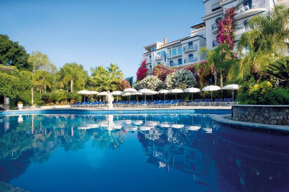 Im mediterranen Stil, in ruhiger Lage oberhalb des touristischen Zentrums von Giardini Naxos erbaut, ca. 200 m vom privaten Strand des Hotels entfernt. Das Hotel liegt inmitten eines gepflegten und mit schönen Statuen geschmückten Gartens.