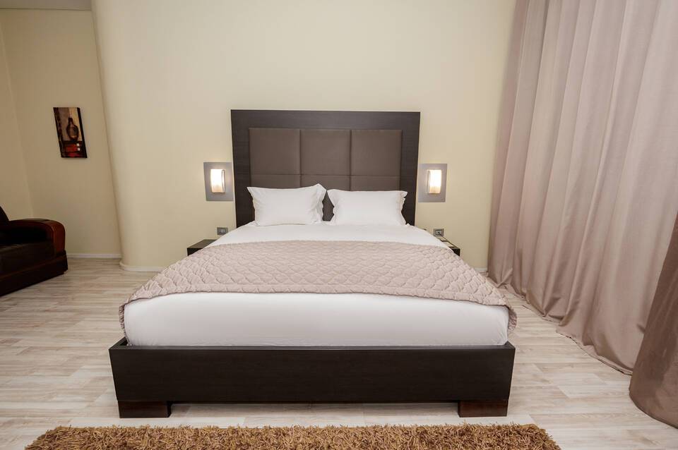 Das Hotel Sky Hotel Tirana befindet sich ca. 38 km von Durres entfernt (Elbasan ca. 38 km). Einkaufsmöglichkeiten liegen ca. 700 m vom Hotel, ein Supermarkt ist nach ca. 200 m zu erreichen. Zu den nächsten Bars und Restaurants gelangt man nach rund 50 m. Zur nächsten Diskothek gelangt man nach rund 1 km. Weitere Unterhaltungsangebote wie ein Kino und ein Theater sind in ca. 750 m bzw. in ca. 700 m Entfernung zu finden. Folgende Sehenswürdigkeiten sind vom Hotel aus erreichbar: Bunkart 2 (ca. 700 m), Nationa Historical Museum (ca. 700 m), House of Leaves Museum (ca. 500 m) und Tirana castle (ca. 800 m). Für Mobilität im Urlaub sorgen neben einem Mietwagen-Verleih auch eine Bushaltestelle (ca. 500 m entfernt). Zur ärztlichen Versorgung im Notfall befindet sich ein Krankenhaus in etwa 3 km Entfernung. Der Flughafen (TIA) ist ca. 20 km entfernt. Zwischen Hotel und Flughafen verkehrt ein kostenloses Shuttle.