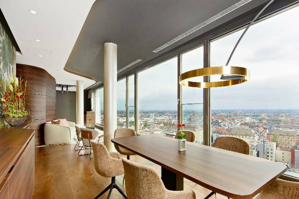 Das NH Collection München Bavaria Hotel, früher bekannt als NH München Deutscher Kaiser, befindet sich im ersten Wolkenkratzer in München und ist nach wie vor eines der höchsten Gebäude im Stadtzentrum. Es ist der perfekte Ort für Besichtigungen, da es sich im Herzen der Stadt befindet und nur einen kurzen Spaziergang vom Karlsplatz, dem Rathaus am Marienplatz, dem Augustiner Keller und dem Hofbräuhaus entfernt ist. Die Gäste profitieren von einer einfachen Anbindung an den Flughafen und quer durch die Stadt, denn der Bahnhof ist nur wenige Schritte vom Hotel entfernt. Mit 219 Zimmern ist das NH Collection München Bavaria ein komfortabler und moderner Ort zum Entspannen und bietet kostenloses WLAN im gesamten Hotel. Jeden Morgen servieren wir ein köstliches, frisches Frühstück, das in den Sommermonaten auf der Außenterrasse genossen werden kann. Es gibt eine große Auswahl mit Optionen für jeden Geschmack, ergänzt durch eine Auswahl an heißen und kalten Getränken. Für Snacks und ein authentisches bayerisches Bier besuchen Sie die Bar, in der Sie auch Sportübertragungen verfolgen können. Das Restaurant bietet Zimmerservice. Veranstaltungen können in einem unserer 12 Tagungsräume abgehalten werden, die bis zu 170 Personen Platz bieten. Für einen zusätzlichen Wow-Faktor besuchen Sie SKY16 in der 16. Etage.