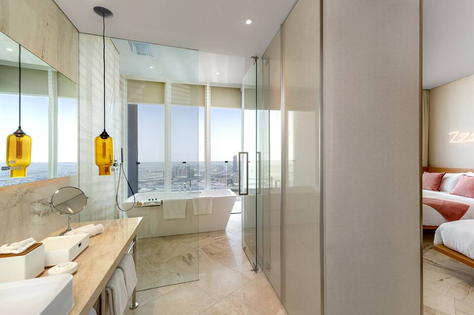 Das Hotel FIVE JUMEIRAH VILLAGE DUBAI liegt ca. 15 km to FIVE Palm private beach m vom privaten Strand entfernt. Die nächstgelegensten Restaurants und Bars erreichen Sie schon nach wenigen Gehminuten. Die Entfernung zum Flughafen beträgt nur wenige Meter. Zwischen Hotel und Flughafen verkehrt ein Shuttle (gegen Gebühr). In der Umgebung sorgt der nahegelegene Golfplatz für Zeitvertreib im Urlaub. Der Strand ist durch einen Rettungsschwimmer beaufsichtigt. Hier stehen Badetücher zur Verfügung. Zum Strand wird ein Shuttle angeboten. An einer Beachbar im Strandbereich werden erfrischende Getränke serviert. Das Hotel ist ausgestattet mit einer 24h am Tag geöffneten Rezeption (Check In rund um die Uhr möglich), einer Lobbybar, WLAN, einem Internet-Zugang, einem kleinen Shop für Ihre Einkäufe, Duschen und Umkleideräumen, einen Whirlpool, Sanitätskasten sowie Parkmöglichkeiten. Auch ein Friseur ist im Hotel zu finden. Im Außenbereich der Anlage befindet sich ein beheizter Pool, an dem Badetücher für Sie bereitstehen. Darüber hinaus können Sie im Freien auf einer Terrasse entspannen. Gesellige Stunden können Sie in der Diskothek des Hauses verbringen. Auch ein Geldautomat ist auf dem Hotelgelände vorhanden. Für die Kleinsten können Babybetten und Hochstühle zur Verfügung gestellt werden. Ihr Gepäck können Sie im hoteleigenen Abstellraum verstauen. Zur Reinigung Ihrer Kleidung steht Ihnen ein Wäscheservice zur Verfügung. Für Ihren Komfort sorgt der Hotelpage. Bei Bedarf können Sie sich rund um die Uhr an den medizinischen Service wenden. Für Kongresse und sonstige geschäftliche Meetings bietet das Hotel ein Businesscenter sowie einen Konferenzbereich mit Scanner sowie Catering-Service. Wer die Urlaubsregion erkunden möchte, kann den hotelnahen Auto-Verleih nutzen. Aufgrund seiner barrierefreien Ausstattung wie z.B. seperaten, barrierefreien Zugängen, rollstuhlgerechten Zimmern und einem rollstuhlgerechten Lift ist das Hotel auch für Personen mit eingeschränkter Mobilität geeignet. Verpflegung All Inclusive, Halbpension sowie nur Frühstück an. Frühstück wird amerikanisch, kontinental, vom Buffet, à la carte oder als Brunch angeboten. Zum Mittagessen werden Speisen als Menu serviert. Zum Abendessen gibt es ebenfalls Gerichte vom Buffet, als Menu oder à la carte. Bei Buchung von All Inclusive sind importierte alkoholische Getränke (limitiert) rund um die Uhr und ohne Zuzahlung erhältlich. Für Ihr leibliches Wohl finden Sie im Hotel ein Buffetrestaurant mit Terrasse (kalorienreduzierte, glutenfreie und auch vegetarische Speisen) und eine Poolbar. Als Getränke werden im Hotel rund um die Uhr internationale alkoholische Getränke angeboten. Entfernungen Nächstes Krankenhaus: ca. 8 km m Nächste Reitstrecke: ca. 10 km m Sport und Freizeit Im Innenbereich wartet ein 24 h pro Tag geöffneter Fitnessraum auf Ihren Besuch. Auch Yoga wird im Hotel angeboten. Für die Radfahrer steht ein Abstellraum zur Verfügung. Im Wellnessbereich erwartet Sie eine Sauna. Hier werden auch Massagen angeboten. Für Ihr Wohlbefinden bietet das Hotel Hitzetherapien an. Zur Unterhaltung der erwachsenen Gäste wird an manchen Tagen Live-Musik präsentiert. Weitere Informationen Das Hotel ist gay-friendly