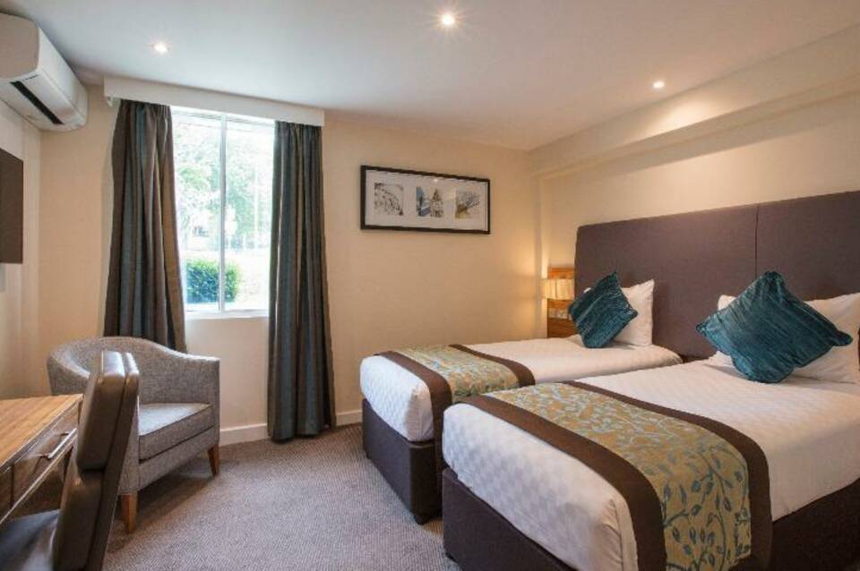 Das Thistle Heathrow am Terminal 5 ist die perfekte Wahl, wenn du ein Hotel in der Nähe des London Heathrow Airport oder vor deinem Urlaub benötigst. Wir haben alles, was du brauchst, damit du dich wie zu Hause fühlst, darunter eine komfortable Lounge und Bar, 266 Zimmer mit Bad und 450 Parkplätze vor Ort. Komm in Urlaubsstimmung und entspanne dich in unserer brandneuen Aviator Sports Bar & Restaurant. Sieh dir Live-Sport bei einem eiskalten Bier und einem erstklassigen Burger an. Die Heathrow Pods neben uns bringen dich in nur 5 Minuten direkt vom Hotel zum Terminal 5. Sie verkehren von 04:00 Uhr bis 00:15 Uhr, was dein Erlebnis vor dem Flug entspannt! Wenn du vor dem Abflug etwas Zeit totschlagen möchtest, warum besuchst du nicht einige lokale Attraktionen? Du kannst in der Umgebung von Heathrow einige Sehenswürdigkeiten besichtigen und Wimbledon, Windsor, Ascot und die Warner Bros Harry Potter Studio Tour für einen Tagesausflug vom Thistle Heathrow aus leicht erreichen. Wenn du während deiner Abwesenheit einen Parkplatz benötigst, wende dich bitte direkt an das Reservierungsteam des Hotels, um die Verfügbarkeit zu prüfen. Bitte beachte, dass dieses Hotel keinen Aufzug hat, daher sind die Zimmer und Restaurants in den oberen Stockwerken über die Treppe zu erreichen.
