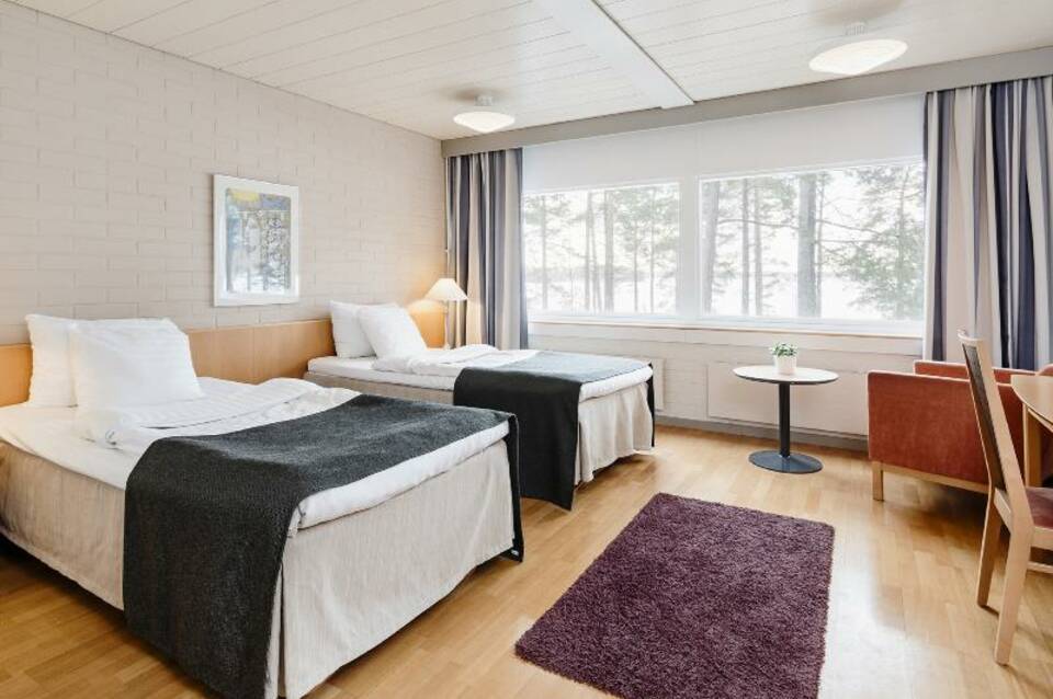 Das Hotel Rantapuisto empfängt dich: Das imposante Hauptgebäude wurde 1963 als Ausbildungszentrum der Pohjoismaiden Yhdyspankki Bank fertiggestellt. Die sehr rationale und geradlinige Architektur, umgeben von bewaldeter und felsiger Natur, bildet ein harmonisches Ganzes. Jeder Aspekt des Gebäudes ist bis ins kleinste Detail durchdacht. Das Gebäude ist ''ein Gesamtkunstwerk''. Bei der Inneneinrichtung wurden verschiedene Holzmaterialien reichlich verwendet. Es ist eine kurze Autofahrt vom Itakeskus entfernt und die nächste Station ist Rastila. Das Hotel verfügt über ein Fitnesscenter/Gym. Alle Zimmer haben Holzböden und sind Nichtraucherzimmer.
