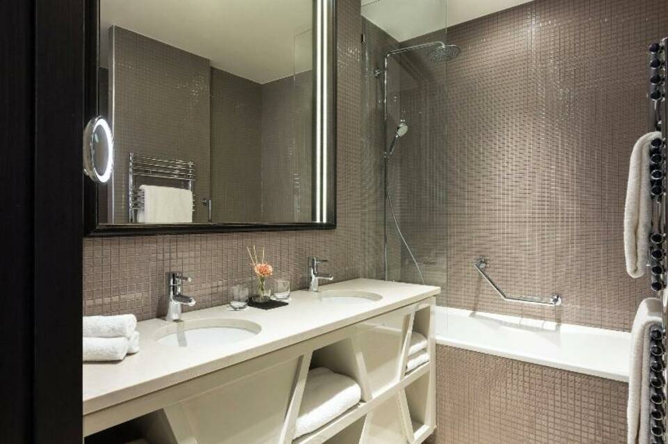 Das La Clef Tour Eiffel Paris befindet sich in idealer Lage im 16. Arrondissement von Paris, zwischen Trocadéro und Champs-Élysées, und bietet bequemen Zugang zu den besten Luxusgeschäften, Touristenattraktionen, berühmten Restaurants, Theatern, Museen, Nachtleben und erstklassigen Geschäftsadressen der Stadt. Das Hotel ist nur 300 Meter von zwei U-Bahn-Stationen entfernt. Das Hotel bietet eine Kombination aus übergroßen Zimmern und Apartment-Suiten und bietet ein Zuhause fern von Zuhause, ideal für längere Aufenthalte oder romantische Kurzurlaube. Zu den Einrichtungen gehören ein Business Center, ein voll ausgestattetes Fitnesscenter, ein eleganter Tagungsraum, eine 24-Stunden-Rezeption, ein Concierge-Service und Zimmerservice, ein Friseur, ein Frühstücksraum und Parkplätze am Haus. Zu den Dienstleistungen gehören tägliche Zimmerreinigung, Business Services, Butler-Service, Wäsche- und chemische Reinigung, Lebensmittellieferung und Limousinenservice zu und von den lokalen Flughäfen (gegen Aufpreis). Die 89 Gästezimmer und 23 Apartment-Suiten sind außergewöhnlich groß, mit hohen Decken und bieten Blick auf die Straße, den Innenhof oder den Eiffelturm. Die Betten umfassen eine Auswahl an einem Doppelbett oder zwei Einzelbetten. Die meisten Suiten verfügen zudem über ein Doppelschlafsofa im Wohnbereich. Die gut ausgestatteten Marmorbäder verfügen über eine Kombination aus Badewanne/Dusche, Haartrockner und Badutensilien. Bitte beachten Sie: Für Abreisen zwischen 12:00 und 15:00 Uhr fallen zusätzliche Gebühren an, und für Abreisen nach 15:00 Uhr wird je nach Verfügbarkeit eine zusätzliche Nacht berechnet.