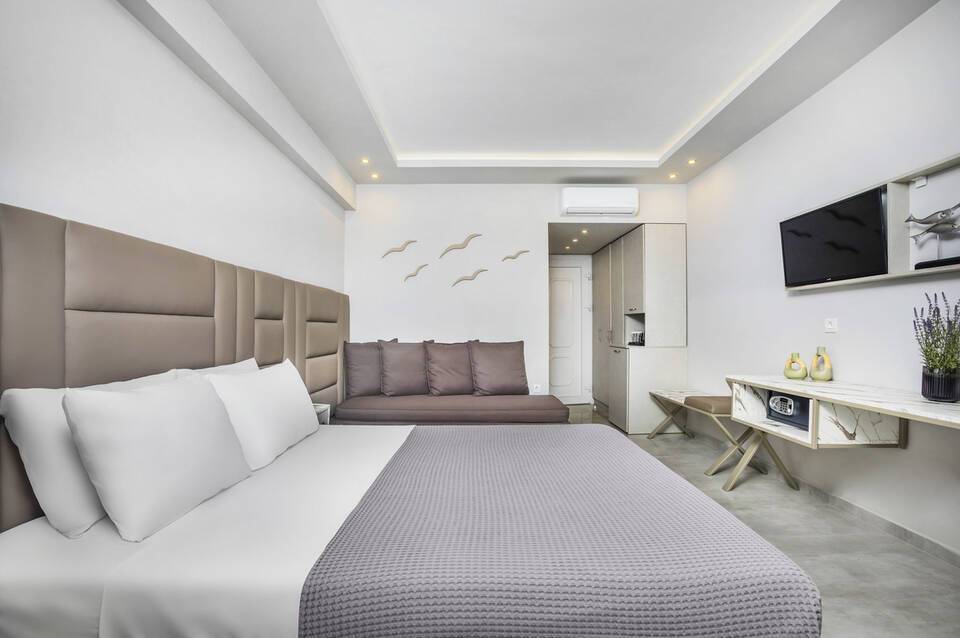 Das familiengeführte Hotel liegt in Pefkohori etwa 500 m vom schönen Sand-/Kiesstarnd entfernt. In der Nähe zum Hotel befinden sich Supermärkte, das Stadtzentrum, eine Tourist Information und Bars/Restaurants.