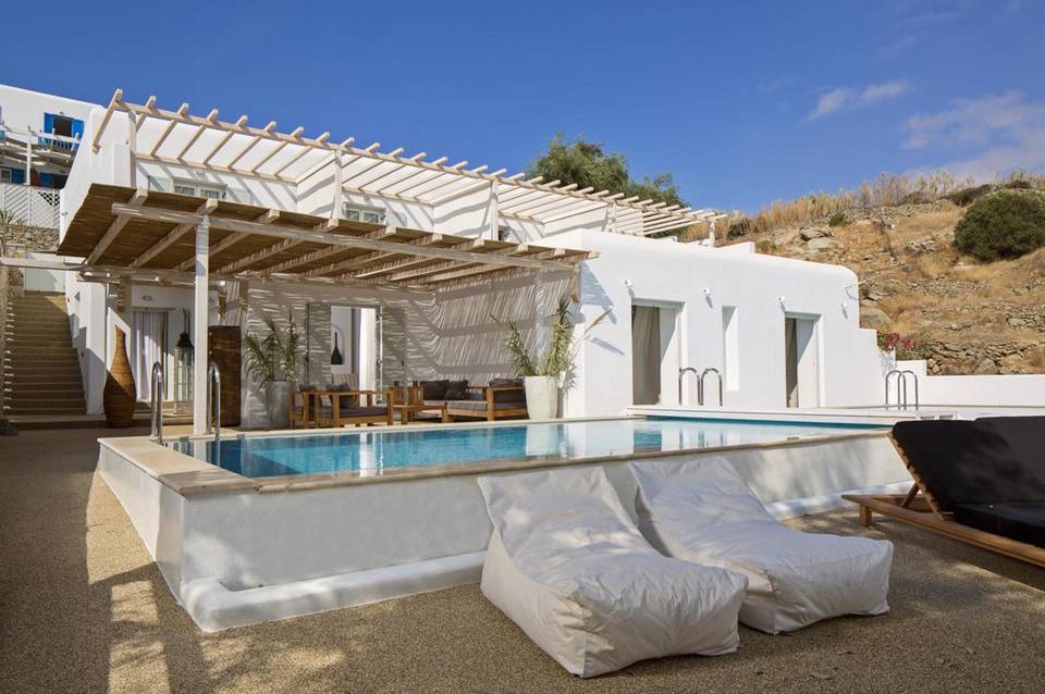 Das Hotel Myconian Ambassador - Relais and Chateaux Hotel , beliebt speziell bei Hochzeitsreisenden, liegt ca. 150 m vom Sandstrand entfernt. Am Strand sind Sonnenschirme und Sonnenliegen gegen Gebühr verfügbar. Die Stadt Mykonos Town ist ca. 4 km entfernt. Einkaufsmöglichkeiten liegen ca. 4 km vom Hotel, ein Supermarkt ist nach ca. 150 m zu erreichen. Zu den nächsten Bars und Restaurants gelangt man ebenfalls nach rund 150 m. Zur nächsten Diskothek gelangt man nach rund 4 km. Weitere Unterhaltungsangebote wie ein Kino und ein Theater sind in ca. 4 km Entfernung zu finden. Für Mobilität im Urlaub sorgen neben einem Mietwagen-Verleih auch ein Motorrad-Verleih und eine Bushaltestelle (ca. 150 m entfernt). Zur ärztlichen Versorgung im Notfall befindet sich ein Krankenhaus in etwa 3 km Entfernung. Der Flughafen (JMK) ist ca. 6 km entfernt. Zwischen Hotel und Flughafen verkehrt ein kostenloses Shuttle. Zudem verkehrt ein Shuttle nach JMK PORT von 06:00 - 23:59 Uhr (kostenlos).