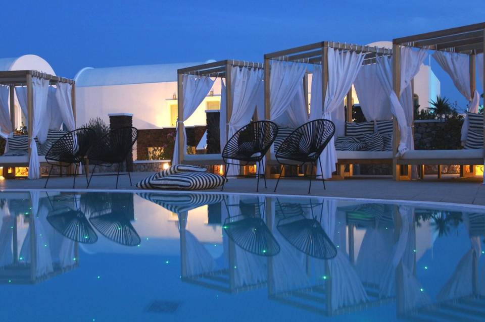 Rund 8 km vom Strand entfernt gelegenes Hotel. Zum touristischen Zentrum sind es ca. 300 m. Die Stadt Fira ist ca. 300 m entfernt (Kamari ca. 8 km, Ia ca. 12 km). Zu den nächsten Bars und Restaurants gelangt man nach rund 300 m. Für Mobilität im Urlaub sorgen neben einem Mietwagen-Verleih auch ein Motorrad-Verleih und ein Taxistand sowie eine Bushaltestelle in etwa 200 m Entfernung. Zur ärztlichen Versorgung im Notfall befindet sich ein Krankenhaus in etwa 3 km Entfernung. Der Flughafen (JTR) ist ca. 6 km entfernt. Zwischen Hotel und Flughafen verkehrt ein Shuttle (gegen Gebühr). Auch zum nächsten Strand wird ein Shuttle (gegen Gebühr) angeboten.