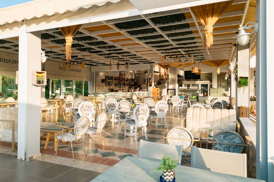 Das Hotel Panorama Hotel liegt ca. 500 m vom Sandstrand entfernt. Am Strand sind Sonnenliegen und Sonnenschirme gegen Gebühr verfügbar. Zum touristischen Zentrum sind es ca. 500 m. Die Stadt Skiathos ist ca. 13 km entfernt. Einkaufsmöglichkeiten liegen ca. 14 km vom Hotel, ein Supermarkt ist nach ca. 350 m zu erreichen. Zur nächsten Diskothek gelangt man nach rund 14 km. Folgende Sehenswürdigkeiten sind vom Hotel aus erreichbar: Evangelistria Monastery (ca. 16 km), Eikonistria (ca. 9 km) und Koukounaries Beach (ca. 500 m). Für Mobilität sorgt eine Bushaltestelle (ca. 15 m entfernt). Der Flughafen (JSI) ist ca. 13 km entfernt.