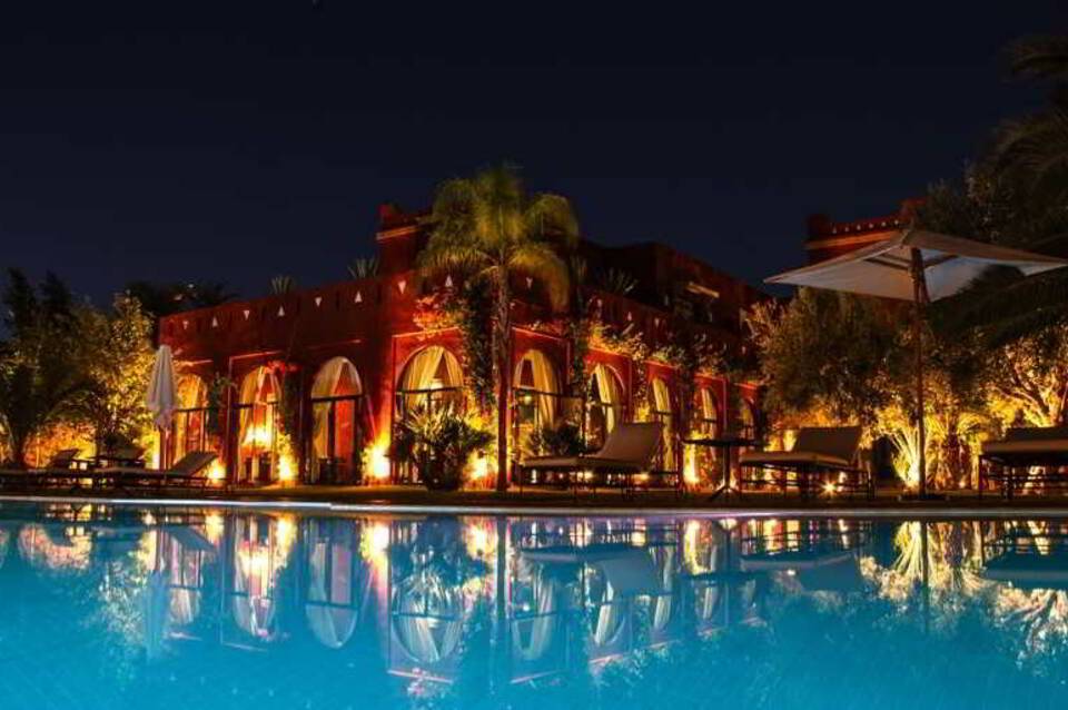 Das elegante Hotel Palais El Miria genießt eine ruhige Lage außerhalb von Marrakesch, nur wenige Gehminuten vom Fluss Oued Tensift entfernt. Das Zentrum von Marrakesch und seine Medina mit ihren malerischen Straßen, unzähligen Geschäften, Cafés, Restaurants, exotischen Düften und dem berühmten Platz Djemaa el Fna sind in wenigen Autominuten erreichbar. Der internationale Flughafen Marrakech Menara ist etwa 14 km entfernt. Das charmante Hotel befindet sich in den Mauern eines Riads, schirmt die Sorgen der Welt ab und bietet eine bezaubernde Oase der Ruhe und Stille. Die elegant eingerichteten Zimmer sind individuell eingerichtet und dekoriert, wodurch jedes seinen besonderen Charme erhält. Sie sind mit modernen Annehmlichkeiten wie Klimaanlage, kostenlosem WLAN und Sat-TV ausgestattet. Die Gäste können ein erfrischendes Bad im Außenpool nehmen oder sich im exzellenten Wellnessbereich verwöhnen lassen. Das exquisite Restaurant serviert köstliche marokkanische Küche. Ein wunderbarer Ort zum Verweilen.