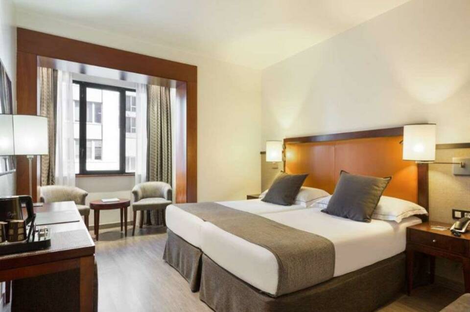 Dieses Luxushotel liegt direkt an der pulsierenden Via Augusta in Barcelona. Zahlreiche Geschäfte, Restaurants, Cafés und Bars befinden sich in unmittelbarer Hotelnähe. Der nächste Strand ist etwa 2, 5 km entfernt, und die Unterkunft verfügt über eine gute Anbindung an die öffentlichen Verkehrsmittel. Das Hotel wurde 1965 erbaut und 2003 vollständig renoviert. Es verfügt über 103 Doppelzimmer, verteilt auf 9 Etagen. Zur Ausstattung gehören eine 24-Stunden-Rezeption, ein Hotelsafe und ein Aufzug. Darüber hinaus bietet das Hotel ein Café, eine Bar und einen Fernsehraum. Die Gäste können zudem ein klimatisiertes Restaurant, einen Konferenzraum und einen Parkplatz nutzen. Wäscheservice und Zimmerservice stehen ebenfalls zur Verfügung. Die angenehm eingerichteten Zimmer verfügen über ein eigenes Bad, ein Direktwahltelefon, Satelliten-/Kabel-TV und eine Minibar. Kostenloses WLAN ist im gesamten Hotel verfügbar. Jeden Morgen wird ein Frühstücksbuffet angeboten.