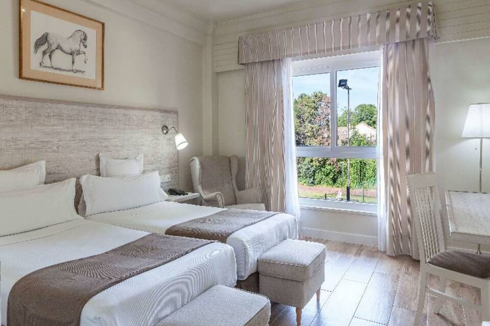 Eines der berühmtesten und bekanntesten Hotels in Jerez de la Frontera. Es liegt im Herzen der Stadt und ist dafür bekannt, die Mehrheit der in der Gegend stattfindenden Veranstaltungen auszurichten. Eine exklusive und elegante Aufmerksamkeit, die Geschäfts- oder Urlaubskunden anzieht und uns oft erlaubt, hohe Würdenträger und Prominente willkommen zu heißen. Es verfügt über 131 Zimmer, die mit TV mit Multimedia-Player, Radio und Musik, Telefon im Zimmer und Bad, Lesestuhl, kostenlosem WLAN, Klimaanlage und Bad mit Haartrockner, Toilettenartikeln, Wärmelicht am Badewannenausgang und Kleenex-Spender ausgestattet sind. Sie blicken auf die Gärten und den Poolbereich. Die Suiten verfügen außerdem über ein Wohnzimmer, einen Balkon oder eine Terrasse und kostenlosen Zugang zum Thermalbad im Spa. Das Hotel bietet eine Bar, Lounges, einen Außenpool, ein großes SPA, ein Fitnessstudio und Parkplätze. Das kürzlich eröffnete Restaurant AQ35 bietet eine große Auswahl an andalusischer und avantgardistischer Küche. Für Kunden mit früher Abreise wird täglich CAFÉ DE MADRUGADORES (Kaffee, Saft und Gebäck) serviert.
