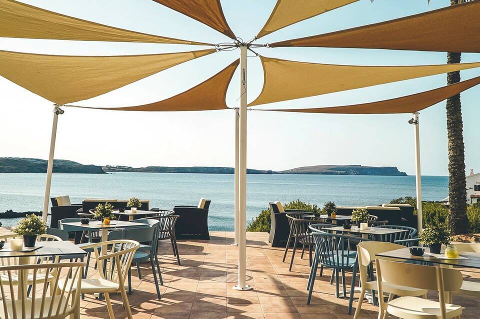 Im menorquinischen Stil erbaut, gruppieren sich die charmanten Apartmenthäuser um den Pool. Auf den Terrassen genießen Sie unvergessliche Momente mit spektakulärem Blick auf das Meer.