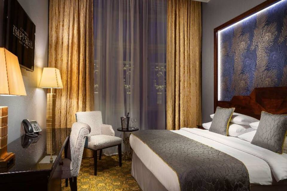 Ein legendäres Art-DĂ©co-Hotel im Herzen von Prag mit Tradition seit 1914 – alle Zimmer wurden 2019 renoviert. Als Juwel echter Art-DĂ©co-Architektur bietet das Art Deco Imperial Prague Luxury Hotel exklusive UnterkĂĽnfte und erstklassigen Service fĂĽr Geschäfts- und Urlaubsreisende, die die Intimität und individuelle Betreuung eines Boutique-Hotels den geschäftigen groĂźen Markenhotels vorziehen. Es kombiniert modernste Technologie und modernen Komfort mit fabelhaften originalen Art-DĂ©co- und Jugendstil-Interieurs. Das Art Deco Imperial Hotel verfĂĽgt ĂĽber 126 elegante Zimmer und Suiten mit kostenfreiem Internetzugang, Tee- und Kaffeezubehör auf dem Zimmer, Marmorbädern mit Badewannen und begehbaren Duschen, luxuriösen Pflegeprodukten, hochvariablen Konferenzeinrichtungen, dem berĂĽhmten CafĂ© Imperial sowie Fitness & Wellness. Das Hotel bietet auĂźerdem einen Mercedes-Benz-Limousinenservice und einen Concierge-Service. Das Art Deco Imperial Hotel liegt im UNESCO-geschĂĽtzten historischen Stadtzentrum von Prag und ist ein idealer Ausgangspunkt, egal ob Sie in die tschechische Hauptstadt kommen, um geschäftlich zu verreisen, die malerische Altstadt zu besichtigen, in der HaupteinkaufsstraĂźe zu shoppen oder das Prager Nachtleben zu erkunden.