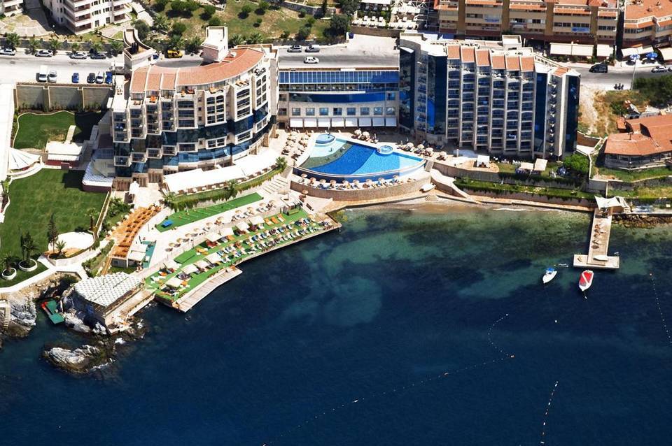 Das Hotel Charisma Deluxe Hotel liegt ca. 50 m vom privaten Sand-/Kiesstrand entfernt. Am Strand sind Sonnenliegen und Sonnenschirme kostenlos verfügbar. Zum touristischen Zentrum sind es ca. 500 m. Die Stadt Izmir ist ca. 70 km entfernt. Die nächstgelegenen Bars und Restaurants erreichen Sie nach rund 500 m. Auch die nächste Diskothek liegt rund 500 m entfernt. Folgende Sehenswürdigkeiten sind vom Hotel aus erreichbar: Ephesus Ancient City (ca. 20 km), Virgin Mary''s House (ca. 26 km) und Sirince Village (ca. 29 km). Für Mobilität sorgt ein Taxistand (ca. 100 m). Zur ärztlichen Versorgung im Notfall befindet sich ein Krankenhaus in etwa 1 km Entfernung. Der Flughafen (ADB) ist ca. 67 km entfernt. Ein weiterer Flughafen (BJV) liegt in etwa 107 km Entfernung.