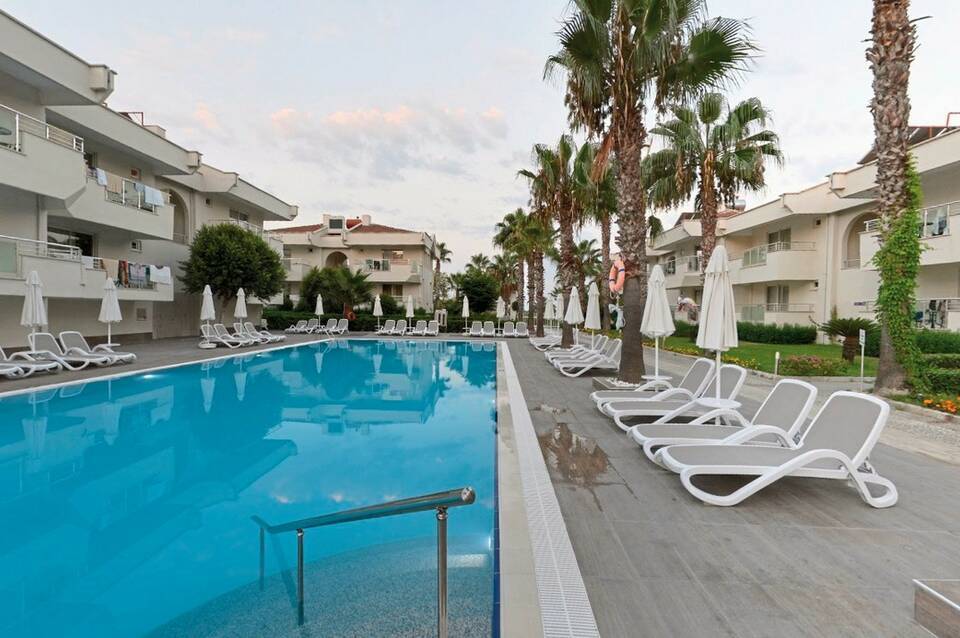 - zum Strand: ca. 350 m - zur Altstadt: Side, ca. 5 km - zum Ortszentrum: Manavgat, ca. 11 km - zum Flughafen: Antalya, ca. 60 km - Sandstrand: Sonnenschirme, Liegen, Shuttleservice zum Strand (ca. 1.4.-31.10., täglich)